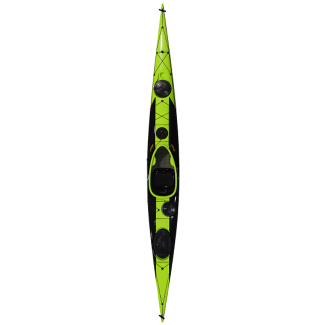 De romp is geoptimaliseerd voor snelheid met zachte kimmen en een afgeronde vorm, wat zorgt voor minder weerstand en een kleinere natte oppervlakte. Hierdoor glijdt de kajak moeiteloos door het water.